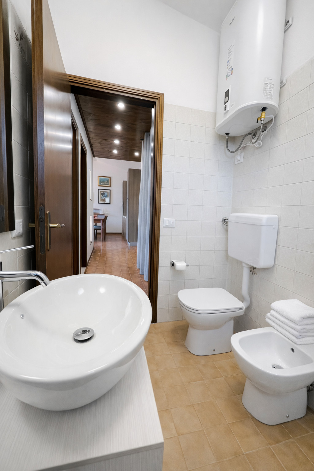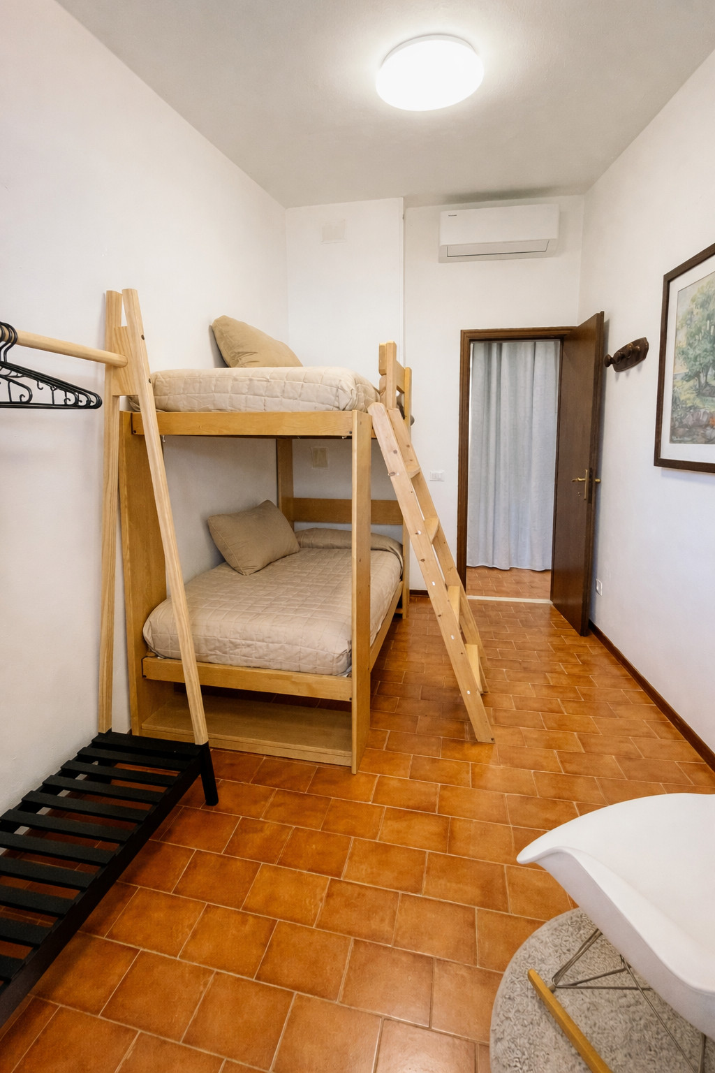Auf derselben Ebene befinden sich ein geräumiges Doppelzimmer, ein Zimmer mit Etagenbett und ein praktisches und funktionales Badezimmer mit Dusche. WLAN ist in jedem Raum verfügbar, und die Wohnung verfügt über einen bequemen unüberdachten Parkplatz. Die Klimaanlage ist nur in den Zimmern verfügbar.